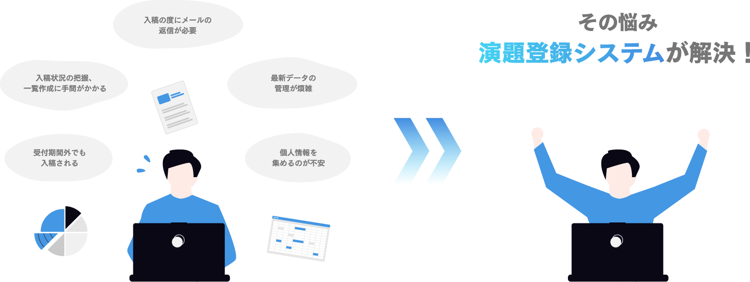 演題募集の登録をオンラインシステムで行うことで、メールで演題を集める際の煩雑な管理作業がなくなります。登録方法の問い合わせ対応も弊社でサポートいたしますのでご安心ください。